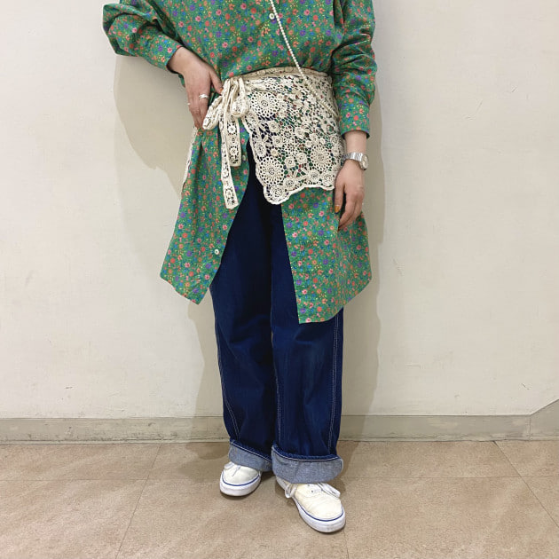 レースエプロンをウェストマークにし、全体にメリハリを付けたのもポイントです☺︎