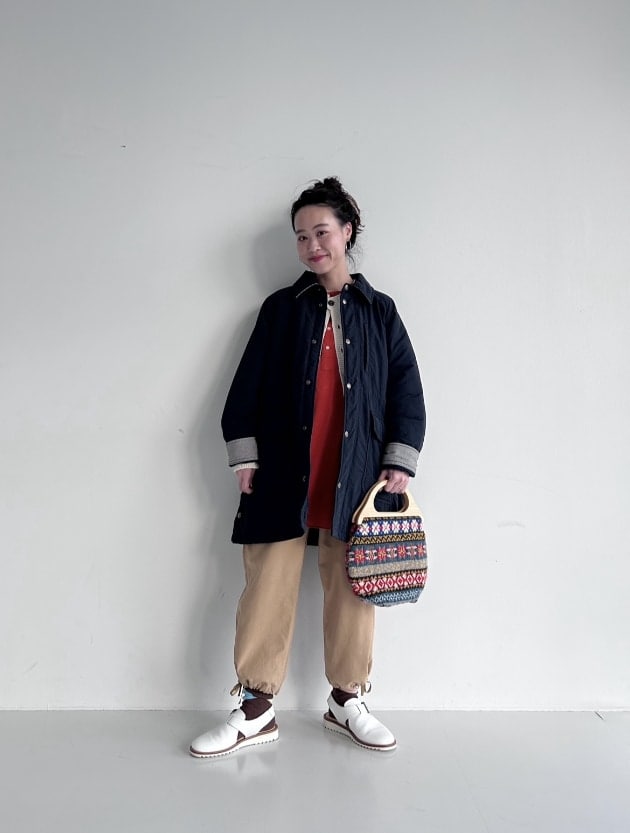 中綿が入っており、ほどよく厚みのある素材です。春先まで長く着られるのが嬉しい!