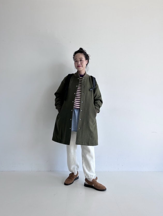 中綿が入っており、ほどよく厚みのある素材です。春先まで長く着られるのが嬉しい!