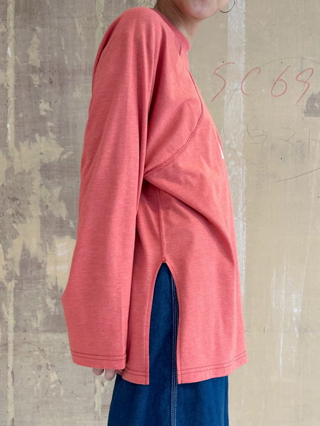 サイズはゆったりしておりますが、ノーカラーなのでスッキリ見えするデザインが魅力的!