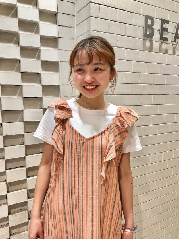 真夏は大胆に肌見せ、それまでは彼女のようにTシャツと重ねてもかわいいです!