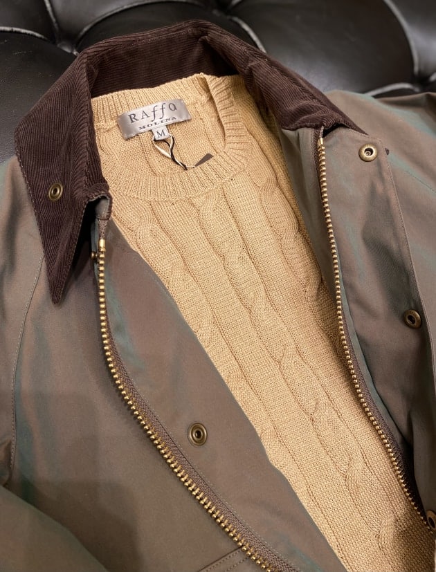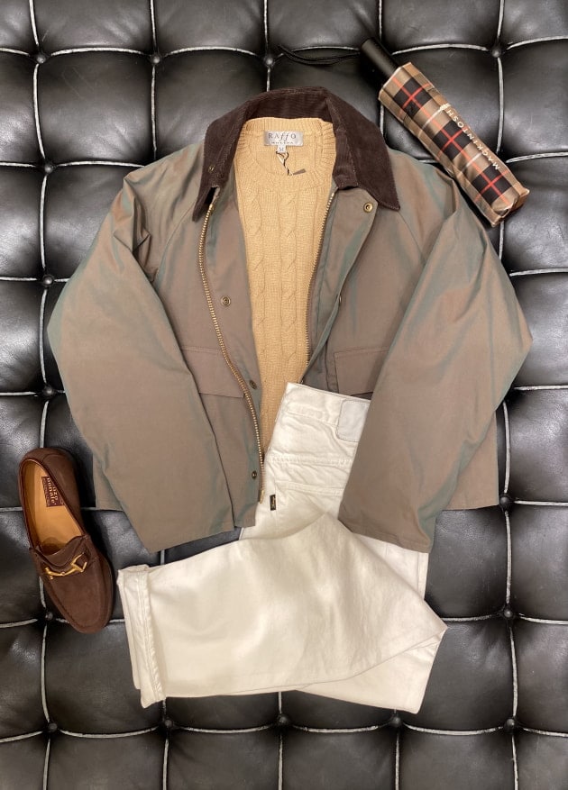 少し物足りなさを感じたのでケーブル編みのものをチョイスし、深みのあるコーディネートに。