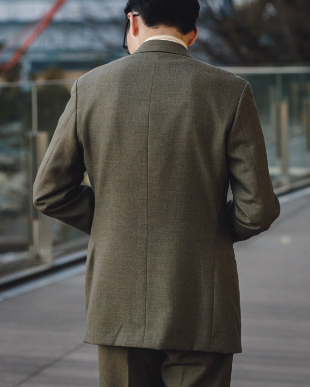 メインのスーツは古着で購入したというメゾンブランドの一着。