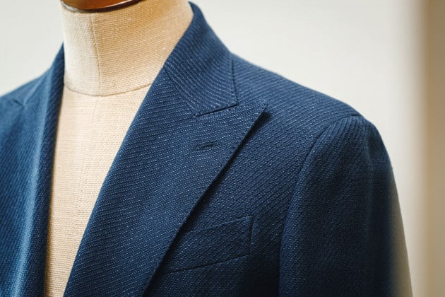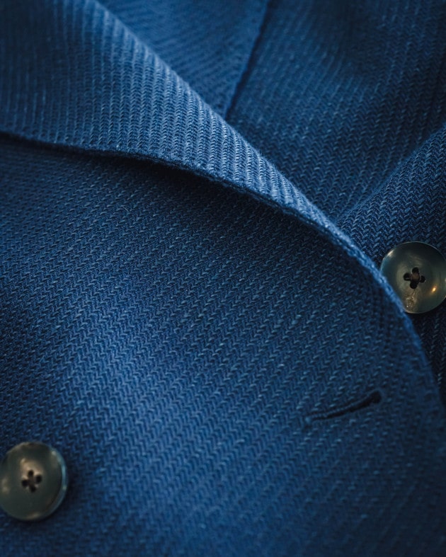 リネンとコットンを混紡した生地はさらっとしたタッチに鮮やかながら上品な色出しが特徴的。ハリもあり、美しい仕立てもきっちりと映えてくれます。