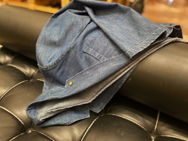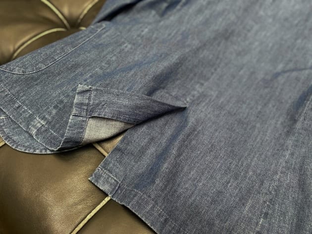 デニムのイメージとは相反して、非常に柔らかい質感で軽やかな生地。綺麗に下に落ちるシルエットが良い意味でデニムらしくないエレガントな佇まい。