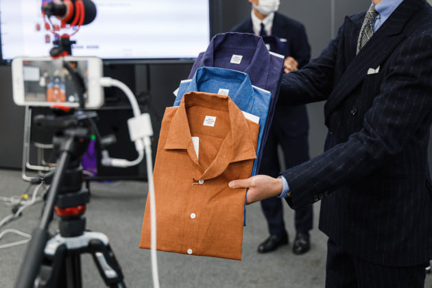 「こちらも継続のキーワード。先ほど出てきたようなシーズナルなパターンを落とし込んだものからリネンやシアサッカーなど素材感で見せているものまで様々。シャツブランドで提案していないところはないだろうというほど、カジュアルシャツの核となるアイテムです。先シーズンに比べると明るめな、鮮やかなカラーが多く見られたところが傾向としてあります。」