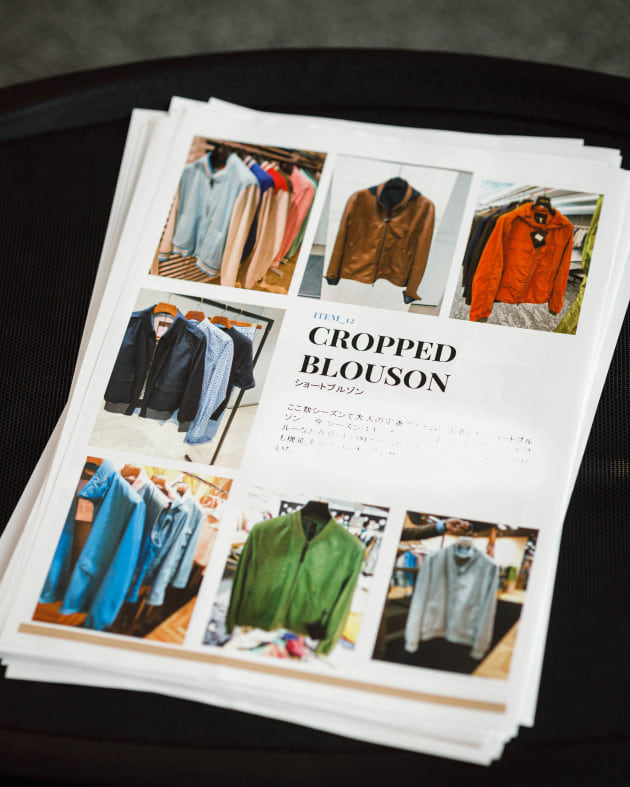 「ここ数シーズン人気のあるショートブルゾンですが、23年春夏シーズンでも多く提案されています。ちょっとした変化としては、色や柄のバリエーションが増えているというところ。鮮やかなカラーリングのファブリックを落とし込んでいたり、柄を入れて奥行きを出しているものも見られました。"ポジティブさ"というところがこういった部分にも反映されている傾向ですね。」