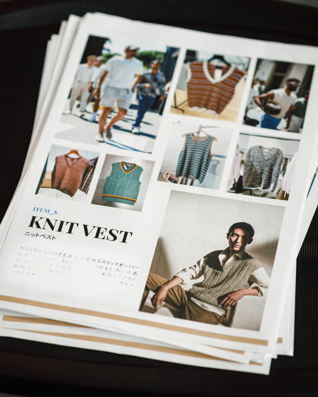 「ここ数シーズンで注目され、流れとして出てきているアイテムですが、この春夏も同様に見られました。前開きのものではなく、被りのものがほとんど。シャツやTシャツに軽く、さらっと合わせるスタイリングはもちろん、素肌に着るという着こなしも提案としてはあります。これは80年代に注目されていたもので、タンクトップのような感覚で着て少し抜けてみせるようなイメージです。リアルに素肌で取り入れるのは難しいと思いますが、ファッションとしては非常に面白いと思います。」