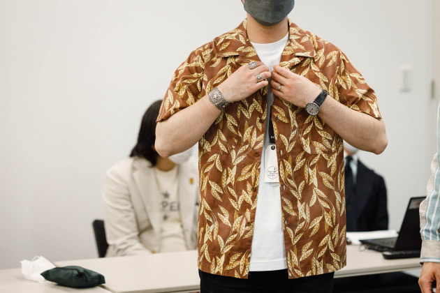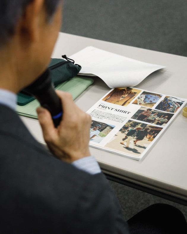 「ここ数シーズン継続して提案されているプリントシャツですが、23年春夏シーズンではよりリゾートムードなプリントが多く見られた傾向にあります。これまでは幾何学模様やバティック調などのものを中心にプリントに載せていましたが、アロハ調やボタニカルなど、開放的なパターンが落とし込まれています。」