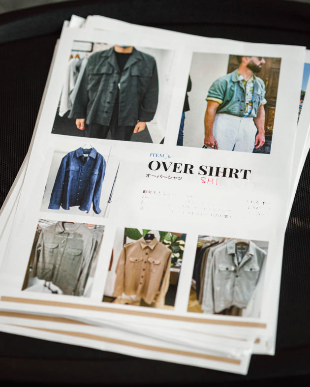 「”ジャケットに変わる羽織り物”というところとしての提案で、ここ数シーズン非常に多く見られたオーバーシャツ。元々はミリタリーシャツからの派生といったイメージでしたが、今ではもう一つのキーワードとして確立しているような印象です。シンプルなシャツ型からサファリシャツ、エポーレット付きのカントリー調なものまで様々です。」