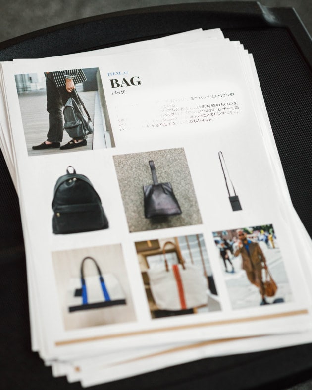 「あまり新しい流れはありませんが、大きく分けると3つに集約されます。トート、デイパック、スモールバッグ。トート、デイパックに関してはそのままですが、スモールバッグというものは最低限のアイテムが入る巾着やサコッシュのようなものを指します。キャッシュレスの流れからフォンケースのようなさらに小さいものも出てきていますね。小さな打ち出しとしては、ボストンや大きめのトートを敢えて装いに取り入れるというような提案。ファッション的には良いですが、あまりリアリティはなく感じます。こういったトレンドは柔軟に取り入れて行きたいですね。」