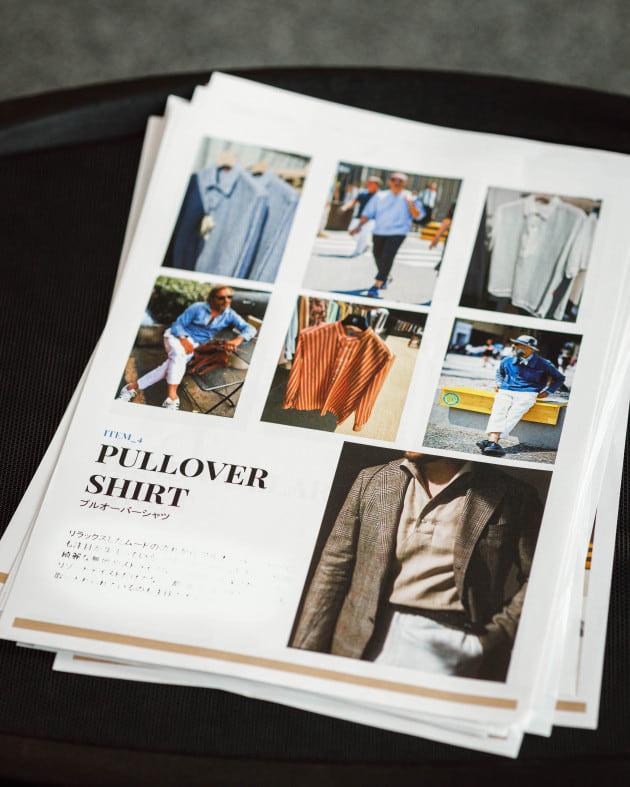 「リラックスカジュアルの流れからここ数年注目されているプルオーバーシャツ。23年春夏シーズンでは大きく分けて2つのタイプを中心的に提案されています。”開放的な、リアルに近いリゾートテイストのプルオーバー”と”テイストだけ取り入れてドレススタイルにミックスする都会的なプルオーバー”。前者は主に装いのメインとして使い、後者はジャケットやスーツにインナーとして取り入れる、そんなイメージです。素材も多く提案されており、それぞれの着こなしに応じてセレクトしていく必要があります。」