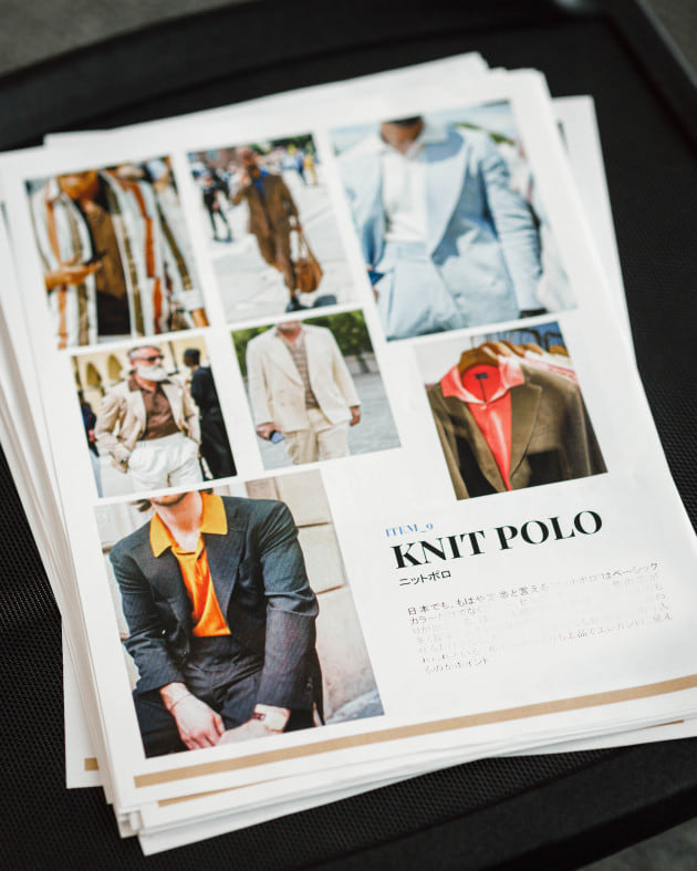 「ポロシャツはもうすでに成熟しているキーワードですが、その中でもニットポロというものに改めて視線が注がれています。今までのジャケットやスーツのインナーとしての着こなしはもちろん、敢えてカジュアルなショーツやドローコードパンツに一枚で着るというような、リラックスムードとしてのニットポロの着こなしも出てきています。その分、フィッティングはややゆったりとしたものが中心で、鮮やかなカラーリングでブラッシュアップされているというところも見逃せないポイントです。」