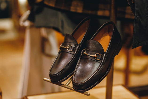 足もとはビットローファーで軽快に。もちろんとことん野暮ったく行く方はボリュームのあるカントリームードなシューズでどうぞ。