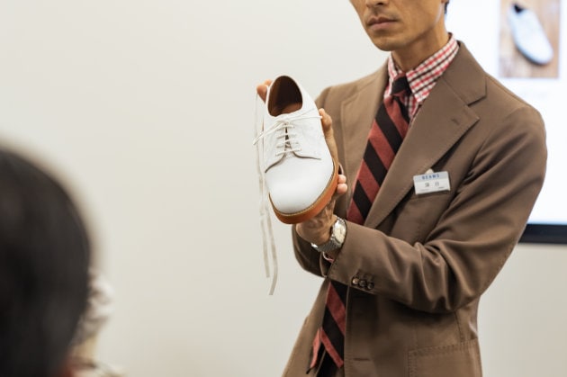 <Lloyd Footwear>からはホワイトバックスも登場。ビームスがリクエストをしてから3年かけて修正に修正を重ね、ようやく完成したこちらのシューズ、フィッティングに関して日本人の足形に合うようにしております。