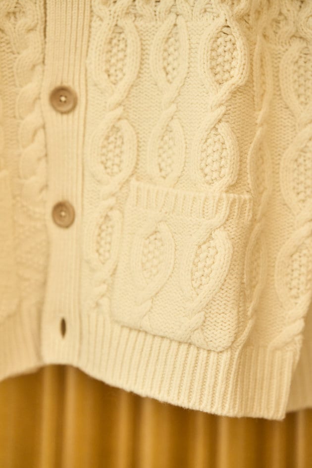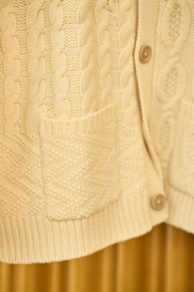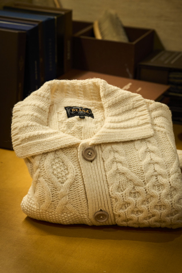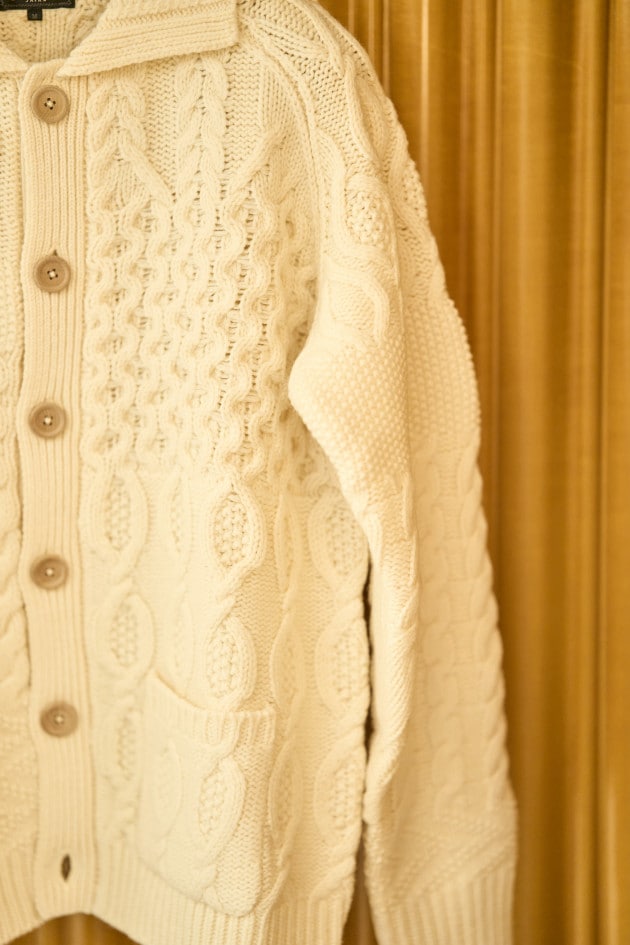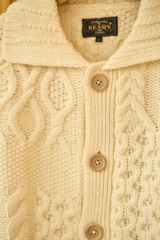 <BEAMS PLUS>オリジナルのアラン編みのカーディガン。