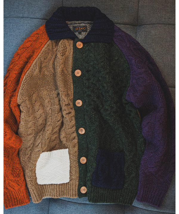 BEAMS PLUS / 3ゲージ マルチパターン アラン カーディガン