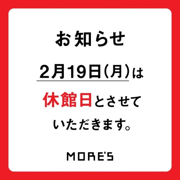この度、誠に勝手ながら横浜モアーズの休館日に伴い、2月19日(月)は当店も休業日とさせていただきます。