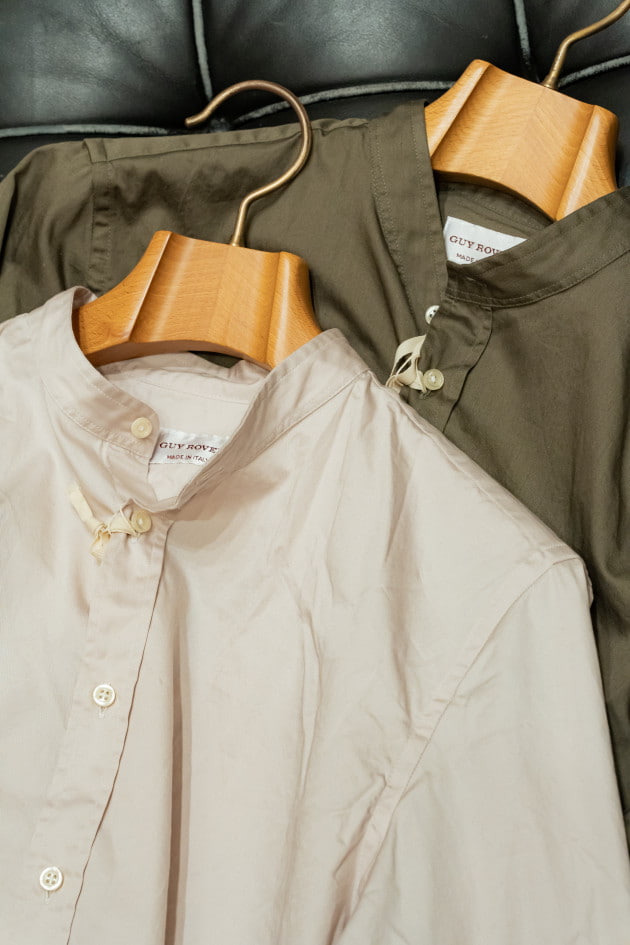 <GUY ROVER × Brilla per il gusto>別注のバンドカラーシャツ。