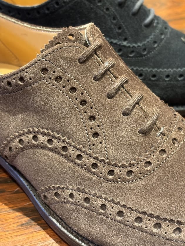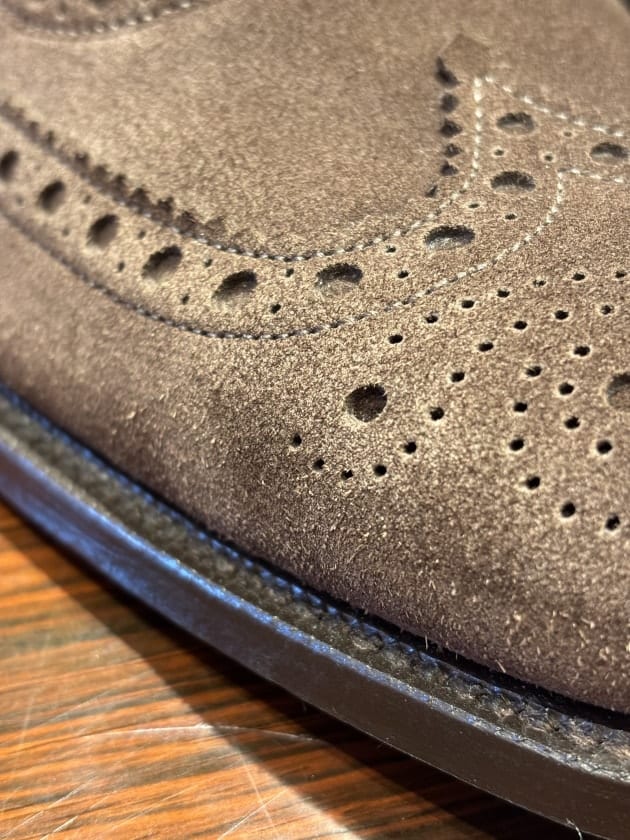 ブローグの穴飾りを大きく変更しています。この感じ、古き良き時代の英国靴を彷彿とさせるディティールですよね。最近あまり見ないと思います。