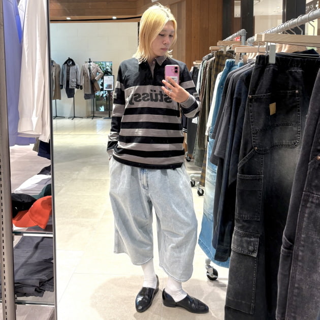 ラガーシャツというスポーティーなトップスに対して足元は少しキレイめな雰囲気でまとめてみました。
