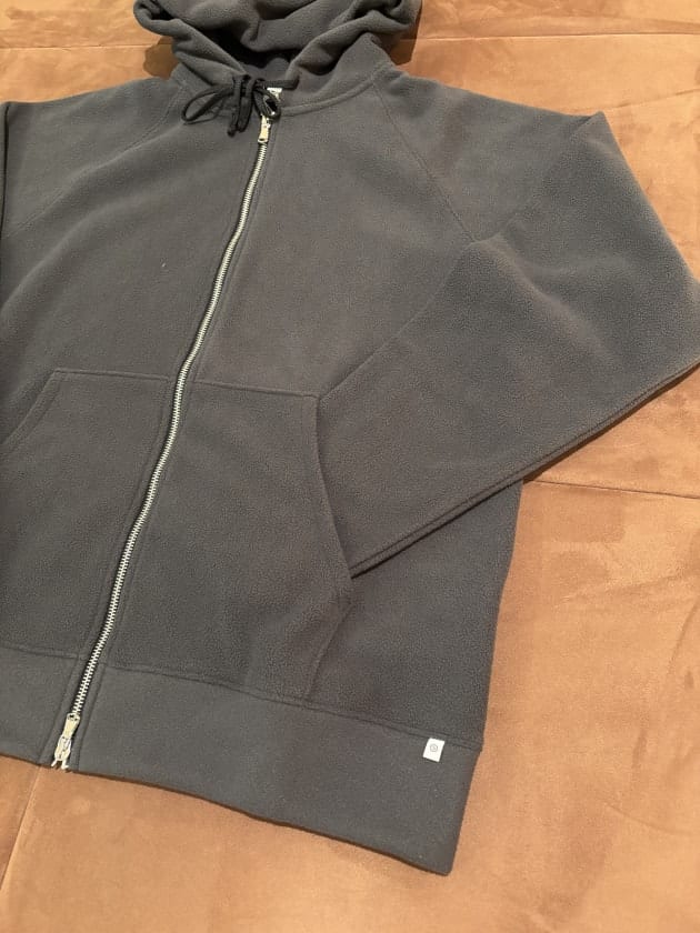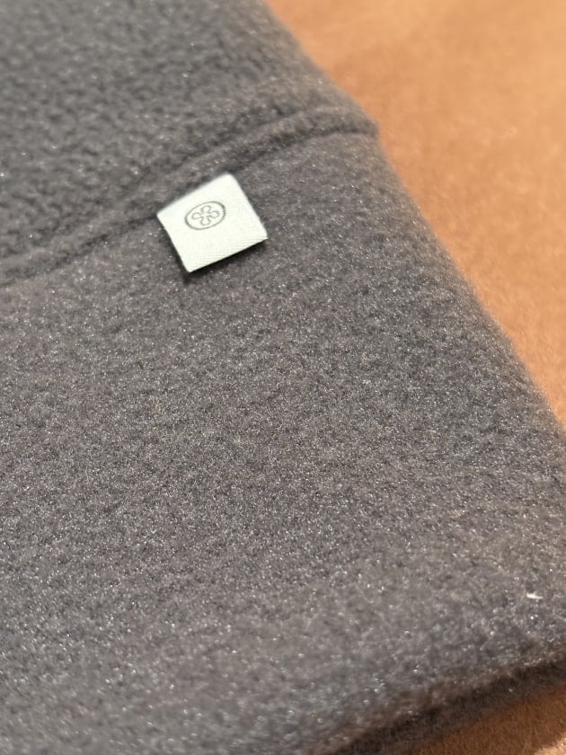 素材的にはポリエステル100%です。所謂フリース素材。毛足が短くモコモコ感控えめの上質なフリースです。マイクロフリースみたいな感じですね。