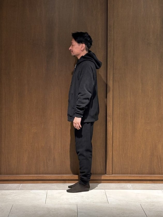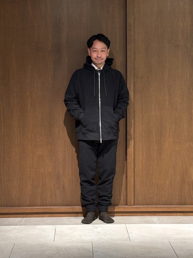 せっかくなのでセットアップがオススメです。冬場は快適にお召し頂けますよ。コーディネート云々というアイテムではありませんので、泉田の着画でシルエット感等ご覧頂きましょう↓