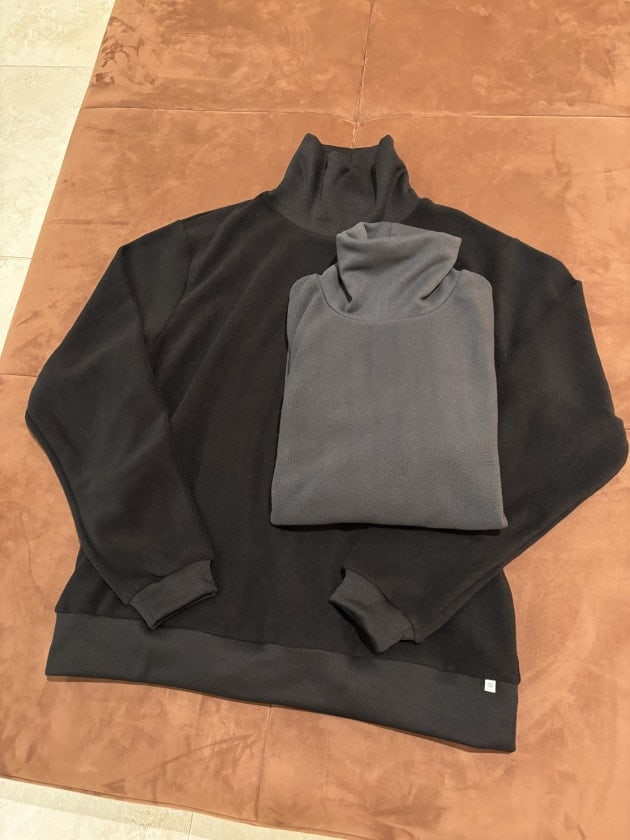 フリース素材のモックネックも展開しております。こちらはリブ部分がジャージー素材です。