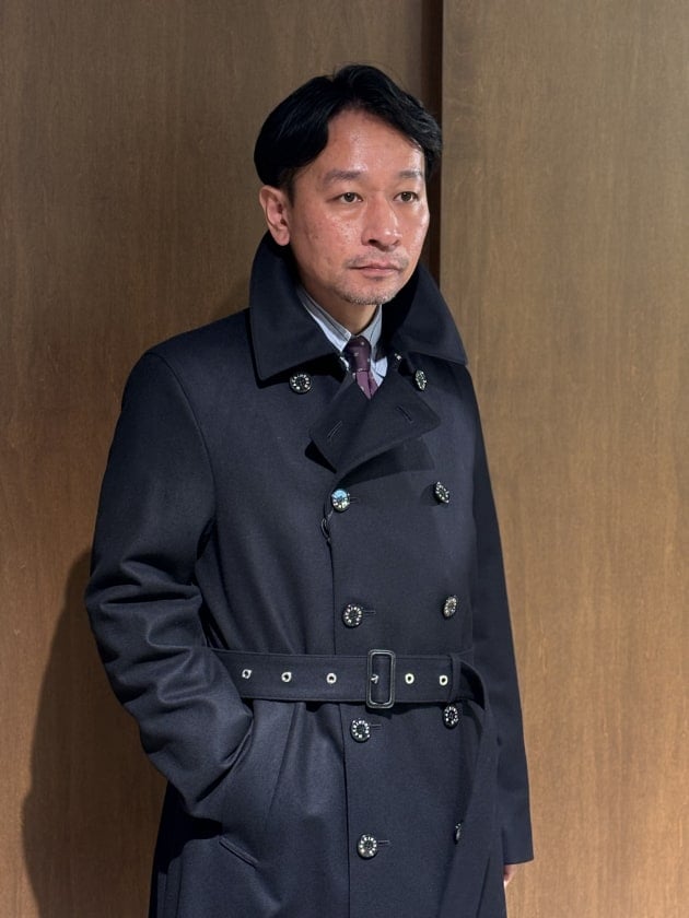 ウールトレンチコート型です。DUNKELD TRENCH。以前はMONCTONというモデル名で展開していました。今季もBEAMS別注生地で2色展開しております。