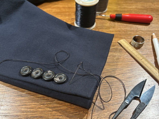 実際にミシンを使用した寸法補正やボタン付け、ほつれ直しなどレクチャー