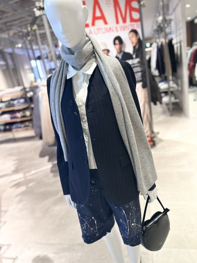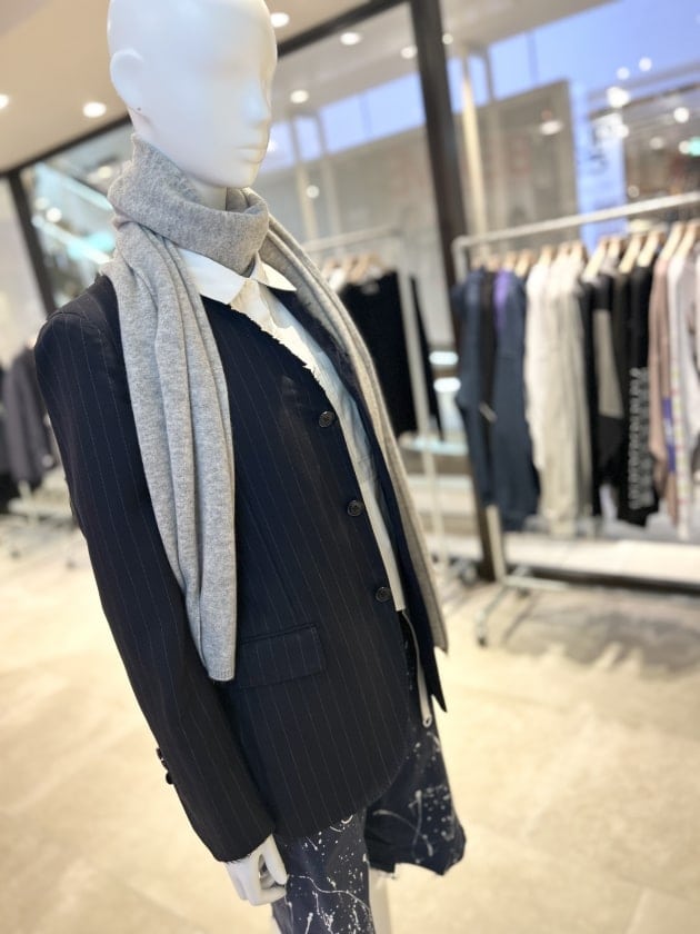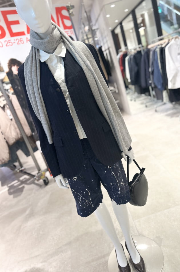 誰もが知ってるイタリア、サルトファクトリーのジャケットを襟と袖をクラッシュさせてジェンダーレスな雰囲気に。