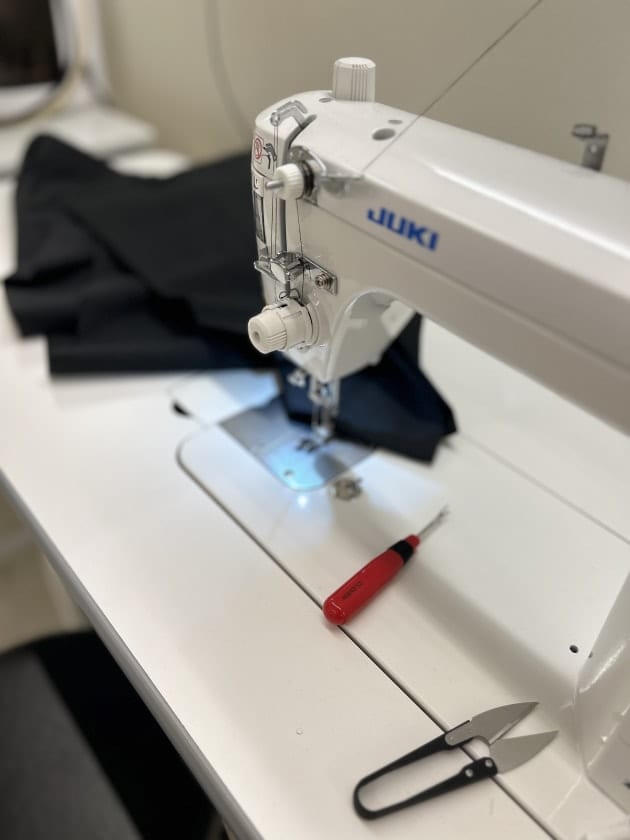 実際にミシンを使用した寸法補正やボタン付け、ほつれ直しなどレクチャー