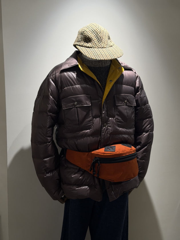 またゆとりのあるフィッティングである事でインナーにニットやスウェットの様な地厚なものをレイヤードする事を可能にしてくれている。ダウンシャツであれどアウターこなしも出来、IN OUTの両立を叶えている。