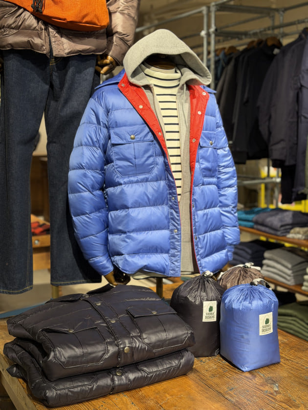 先週末リリースしたSIERRA DESIGNS別注のダウンシャツ。ここ近年はダウンベストを何度か別注。昨年はダウンジャケットも登場。BEAMS PLUSのアウトドアスタイルを支える重要なピースの一つ。