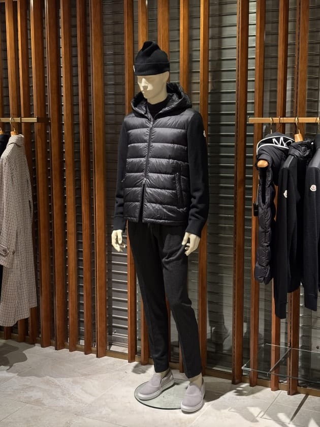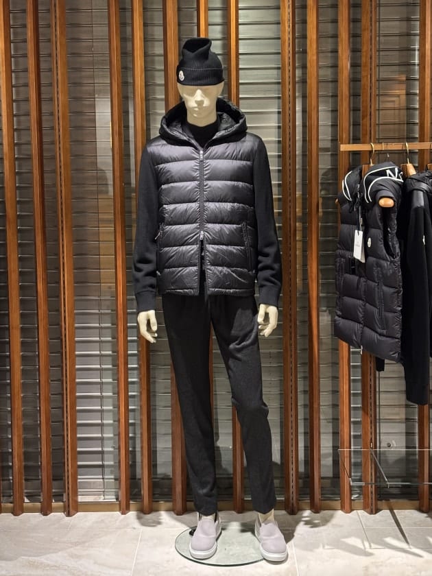 スタイルサンプルとしてマネキンも1体作りました。着せつけている<MONCLERは今季のBEAMSエクスクルーシブモデル。