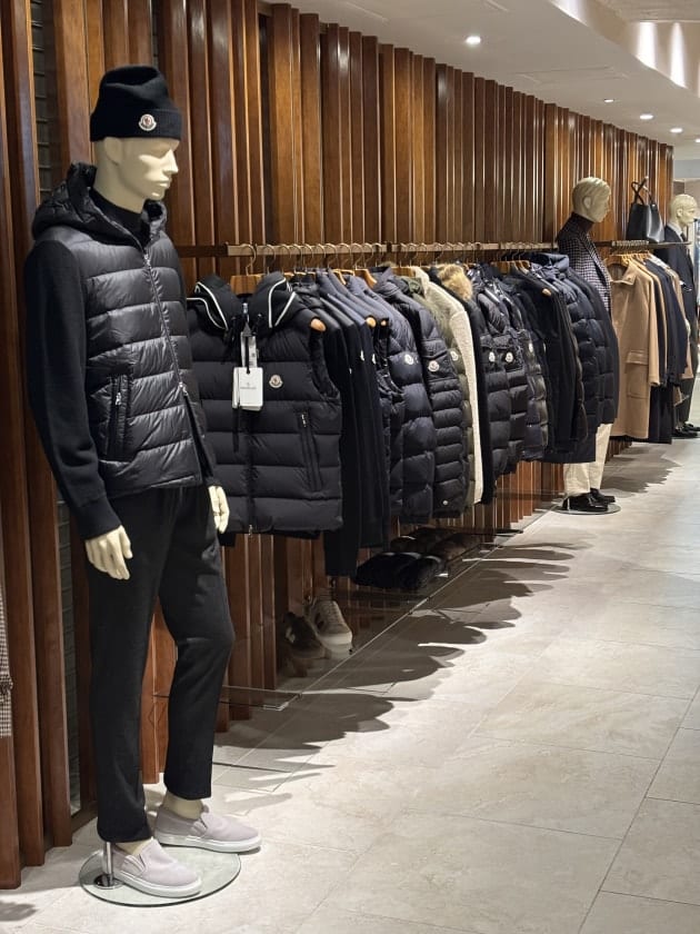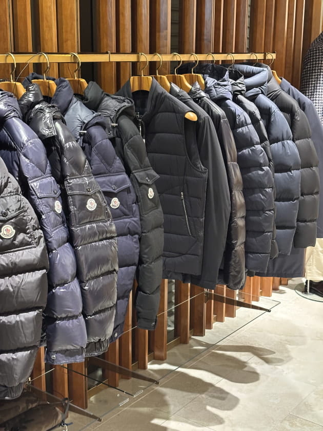 寒くなりました。冬です。シーズン到来です。ルーバー面にズラりとレイアウトしました。<MONCLER>です。