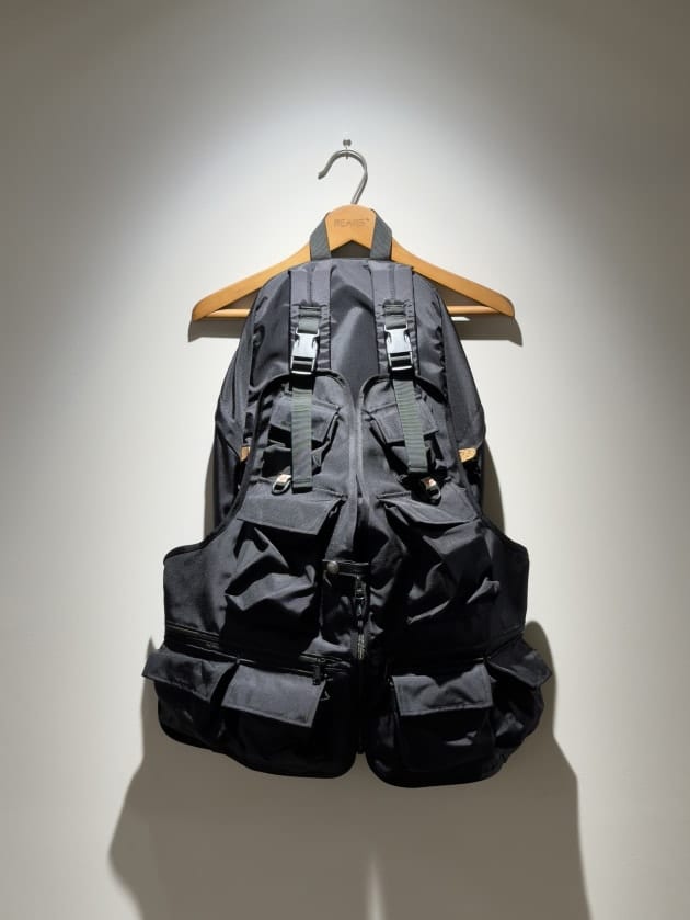 ブランドのインラインでもこうした所謂"ラゲッジベスト"は存在するが、背面側にはDay Pack仕様へとアレンジを加えた一着はもはや洋服の概念を飛び越えた様にも思える。