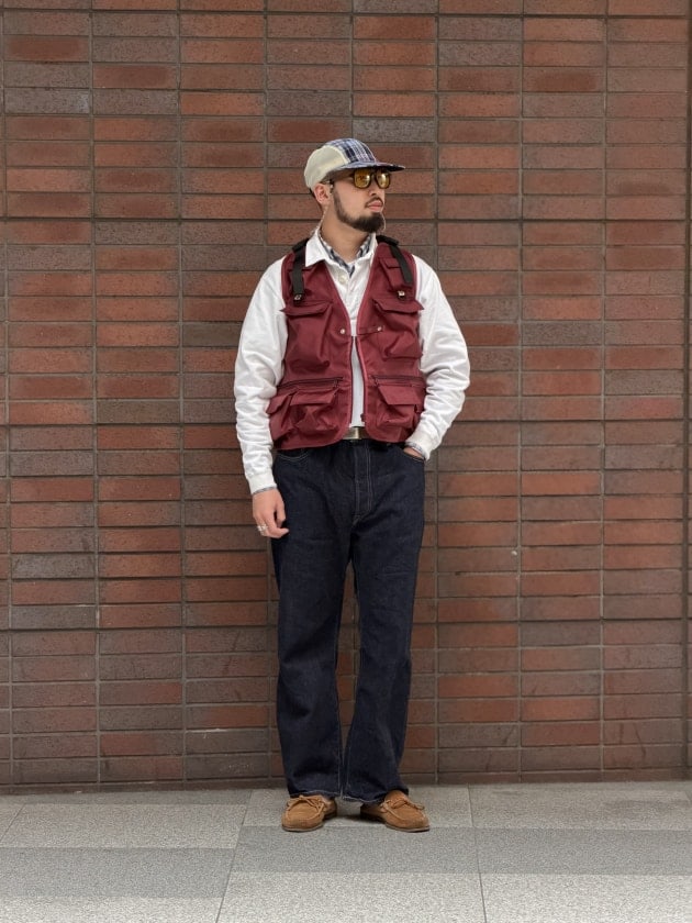 "Classic Outdoor"なスタイルを意識し、ラガーシャツやジーンズとのコンビネーションを楽しみました。インナーにはボタンダウンをチョイスし、ブランドのもつIVYを忍ばせつつデイリーなムードが出る様配慮しました。