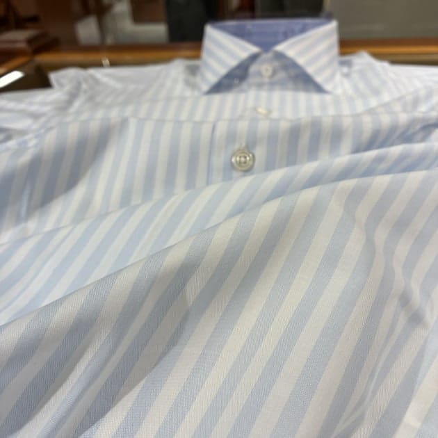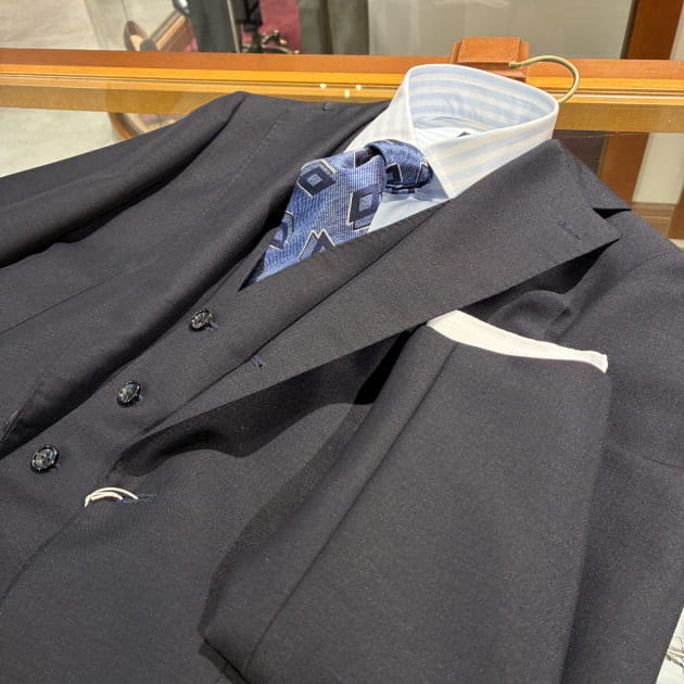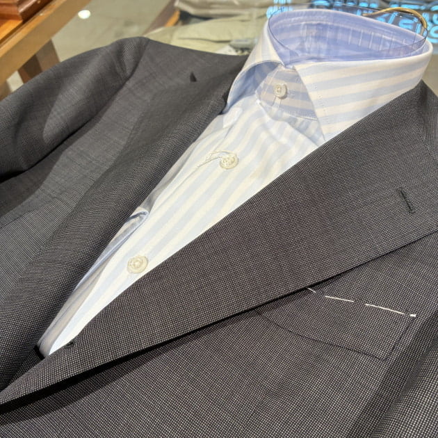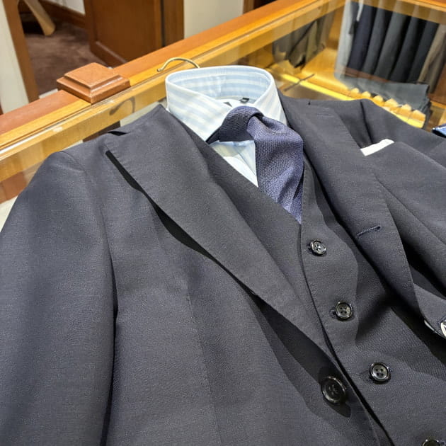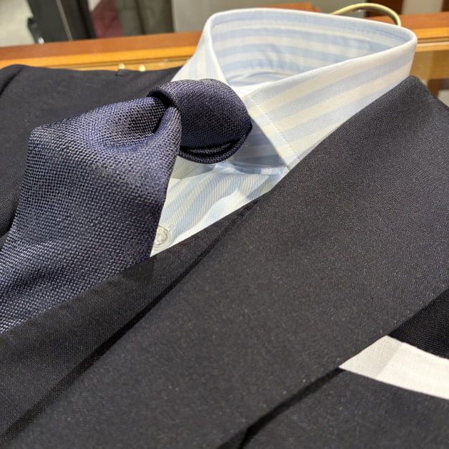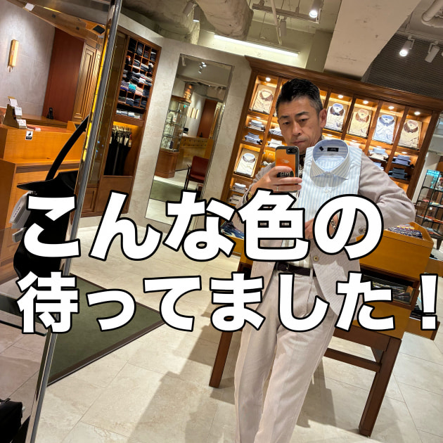 この色ならば、太めストライプでも派手さは出ずに着用いただけそうです。