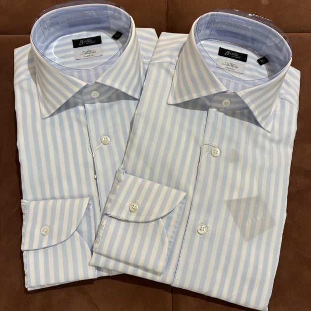 Brilla per il gusto / ALBINI ナチュラルストレッチ ストライプ ワイドカラーシャツ