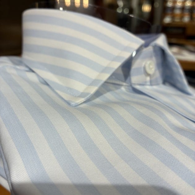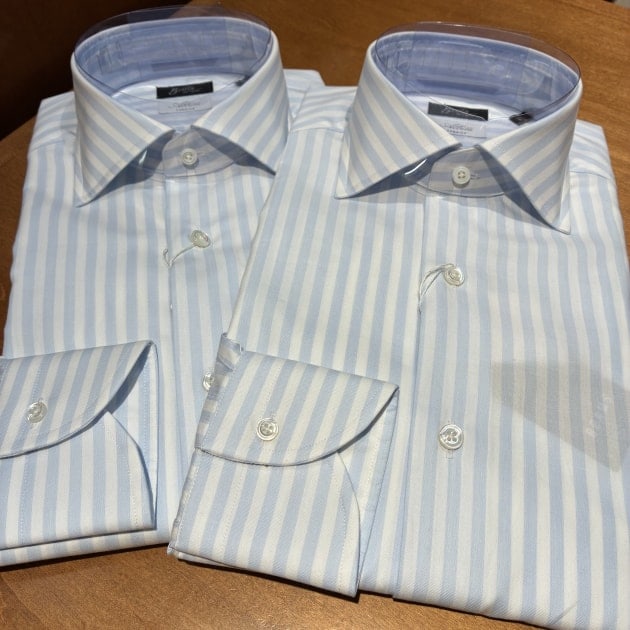 ワイドカラーは、ノーネクタイでもサマになっていいですよね。