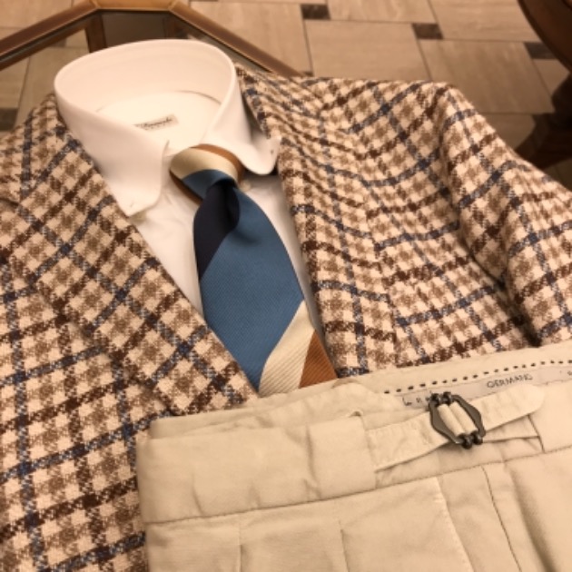 実はこのシャツもコットンリネンで素材も合わせてみました。笑