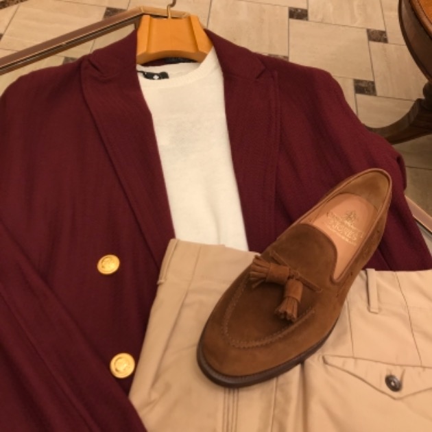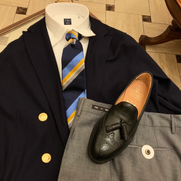 ネクタイもニットタイでは寂しかったので少し堅めのものをチョイスしました。笑
