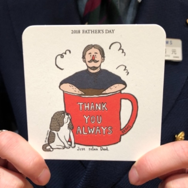 現在当店にて父の日ギフトをお買い上げ頂いた方へ、コースターとしても使えるメッセージカードをお渡ししております!