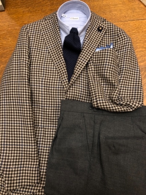 ハウンドゥース?ガンクラブチェック?によく見るとブルーの大きいペーンの入ったジャケット。