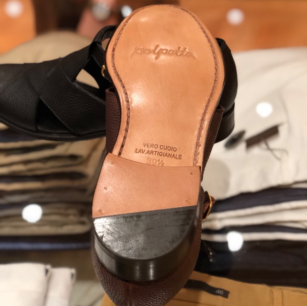 ボロネーゼ製法で作られたこちらは包み込むような履き心地が特徴。肌の見える部分をやや広げており、リゾート感が増しています。