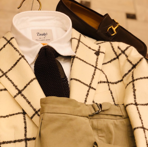 タイドアップで組んでみました。ニットタイやウールタイのような素材感のあるタイが相性良さそうですね!