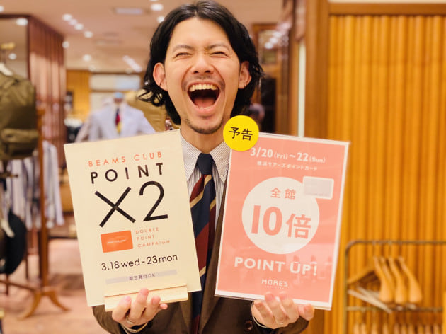 そしてついに本日より、ダブルでお得なキャンペーンを開催しております!ビームスクラブポイント2倍、横浜モアーズポイント10倍の非常にお得な期間です!ぜひご利用ください!