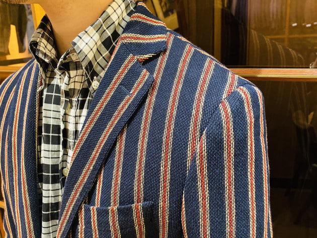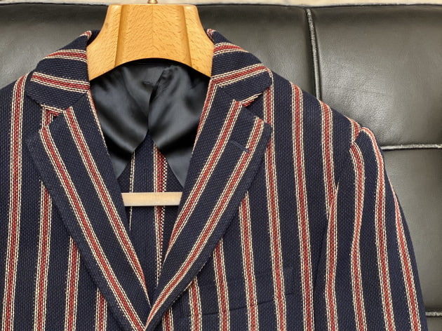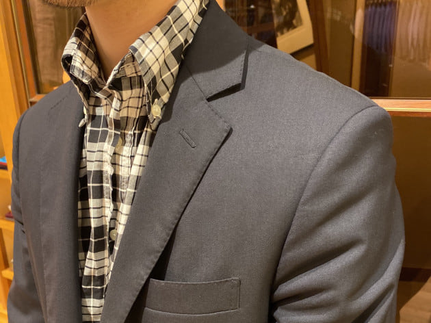 そしてこちらが今回ご紹介のジャケット。肩まわりがコンパクトに収まっていますね。パッドを廃しても、綺麗なラインを保っているのはさすがなところ。