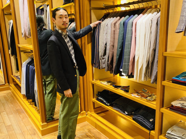 ちなみにこちらは、ごっち愛用の<Brooks Brothers>ネイビーブレザー。彼のも同じ「REGENT FIT」ですが、こちらは定番のパッドありのナチュラルショルダー。